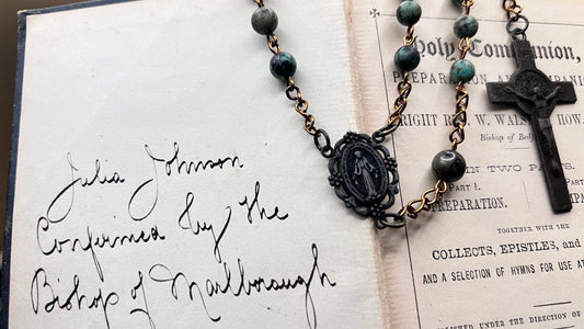 Sacred Heart & St. Benedict Rosary: A Study in Pyrite, Turquoise, and Patinated Bronze