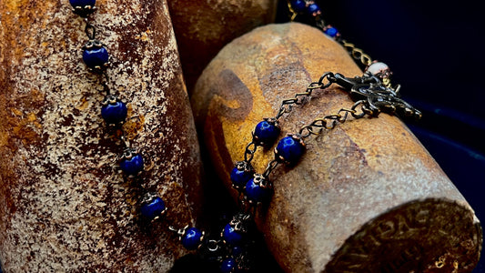 Handcrafted Rosary: Brass, Lapis Lazuli, and Fossil Stone