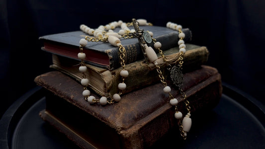 Artisan Bone Rosary with Hand-Forged Wire and Symbolic Emblems